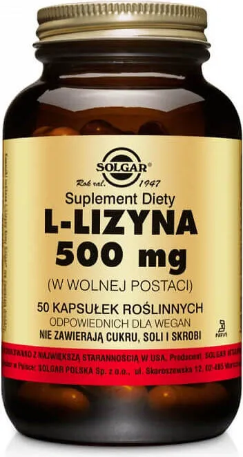 – Lysin in freier Form 500 mg 50 Kapseln SOLGAR